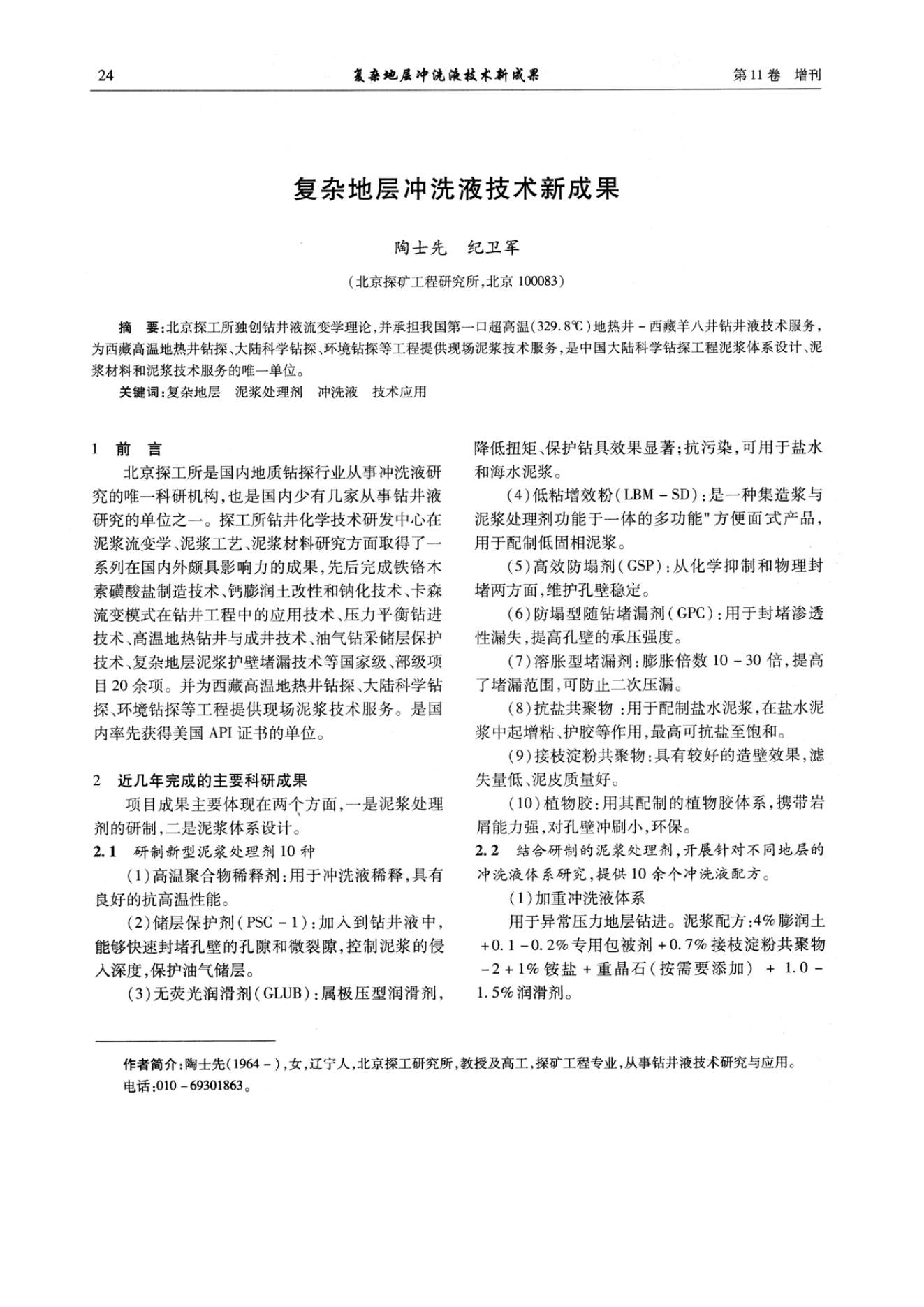 - 低 粘增效 粉 一改性 沥青 冲洗液体 系的研究与应用